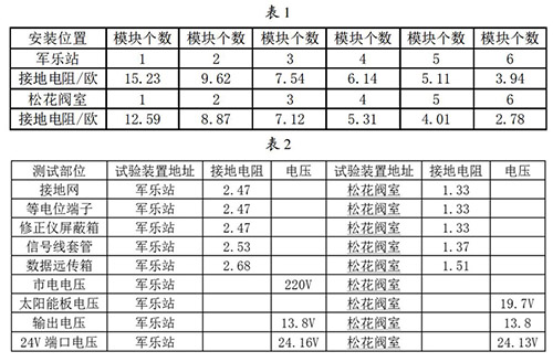 接地網(wǎng)的安裝與連接:接地網(wǎng)是整個數(shù)顯渦輪流量計防雷試驗比較關(guān)鍵的一個內(nèi)容,能不能準(zhǔn)確的論證試驗的有效性,必須保證接地網(wǎng)達到標(biāo)準(zhǔn)的接地電阻,通過對實地地電阻率的測試,初步選擇6個接地模塊埋設(shè)并配用降阻劑使用,邊安裝邊測試直到達到標(biāo)準(zhǔn)值后才引入等電位箱。在軍樂站和松花閥室安裝模塊并測試數(shù)據(jù)見表1。