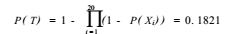 將上表底事件發(fā)生的概率代入P(T)的計(jì)算公式,則得頂事件發(fā)生的概率為: