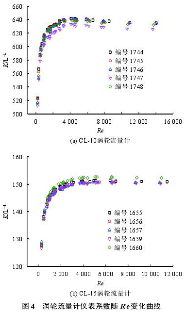 3.2 儀表系數(shù)與雷諾數(shù)關(guān)系