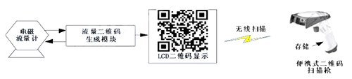 二維碼生成模塊定時(shí)向氨水流量計(jì)發(fā)送采集指令,后者收到指令后發(fā)送流量數(shù)據(jù)。