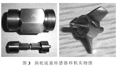 實驗采用口徑為DN10的渦輪流量傳感器,如圖3所示。實驗中選擇10℃進行實驗測試,對應的流體介質(zhì)的粘度為43.49cSt。選取0.3m3/h、0.5m3/h、0.7m3/h、0.9m3/h、1.1m3/h、1.3m3/h和1.5m3/h共7個流量點進行,實驗流量范圍為0.3m3/h到1.5m3/h。