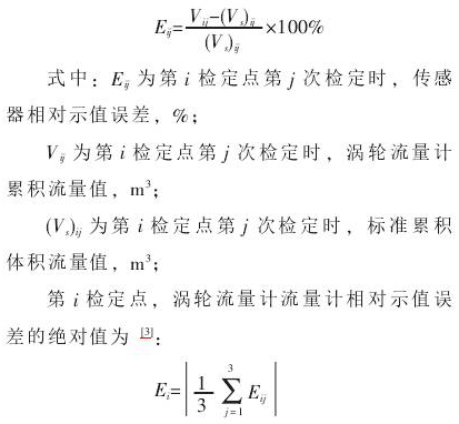 實驗中每個流量點均進行3次測量,(j=1,2,3),3次測量的平均儀表系數(shù)作為此流量點的儀表系數(shù)Ki(i=1,2,3,4,5),各流量點儀表系數(shù)*小值與*大值的平均值,作為傳感器的儀表系數(shù)。