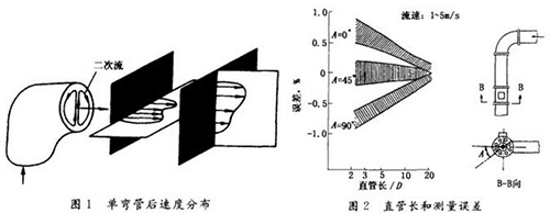 智能渦輪流量計流體流過彎管后,下游產(chǎn)生流速分布畸變,若是兩只鄰近相接的不同平面彎管,除流速分布畸變外還會有漩渦。這些現(xiàn)象要影響裝在下游的大部分類型流量儀表(除容積式等少數(shù)類型外)的測量值,因此通常要求在流量儀表安裝點之前有一定長度直管段,改善進入儀表的流動狀況。智能渦輪流量計受彎管影響較小,直管長度要求也遠低于節(jié)流差壓式、渦街式等其他流量儀表。但是當前智能渦輪流量計精度為測量值的0.5%,甚至0.2%~0.4,即使影響量較小,還是受到人們的關(guān)注。