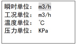 壓力單位: 壓力單位選擇。顯示單位選項(xiàng)可更改儀表運(yùn)行時(shí)顯示的單位,進(jìn)入顯示單位界面,標(biāo)況流量如果選擇為液體質(zhì)量有 t/h、t/min 、kg/h 和kg/min 四個(gè)選項(xiàng)選擇,如果為液體體積有 m3/h、m3/min 、L/h 和 L/min 四個(gè)選項(xiàng)選擇;工況流量有 m3/h、m3/min 、L/h 和 L/min 四個(gè)選項(xiàng)選擇,選擇相應(yīng)的單位,按確認(rèn)鍵后,主界面將以設(shè)置顯示單位進(jìn)行數(shù)值顯示。