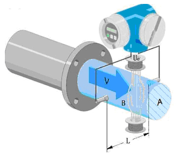 當(dāng)導(dǎo)體在磁場中作切割磁力線運(yùn)動(dòng)時(shí),在導(dǎo)體中會(huì)產(chǎn)生感應(yīng)電勢(shì),感應(yīng)電勢(shì)的大小與導(dǎo)體在磁場中的有效長度及導(dǎo)體在磁場中作垂直于磁場方向運(yùn)動(dòng)的速度成正比。同理,導(dǎo)電流體在磁場中作垂直方向流動(dòng)而切割磁感應(yīng)力線時(shí),也會(huì)在管道兩邊的電*上產(chǎn)生感應(yīng)電勢(shì)。感應(yīng)電勢(shì)的方向由右手定則判定,感應(yīng)電勢(shì)的大小由下式確定:
