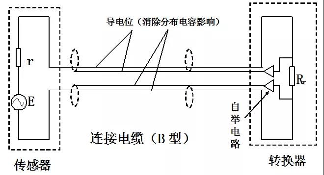 當Ri>>r,C0(連接電纜二線間分布電容)很小時,Ei≈E;當介質(zhì)電導(dǎo)率很低,轉(zhuǎn)換器輸入電壓衰減Ei,而C0分布電容并聯(lián)效應(yīng)顯著,且波形發(fā)生畸變。當被檢測介質(zhì)電導(dǎo)率低,傳感器與轉(zhuǎn)換器間距長時,使用多重屏蔽電纜的概率越高。