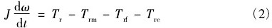 式中: J為渦輪的轉動慣量;ω為渦輪的旋轉角速度,t為時間,Tr為氣流對葉片的推動力矩,Trm為機械摩擦力矩,Trf為流動阻力矩,Tre為電磁阻力矩。