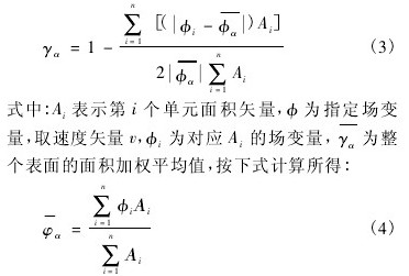 從均勻性指數(shù)的定義可以看出,當指定物理量為速度時,γα表示流場速度分布均勻性。面積加權均勻性指數(shù)在數(shù)值模擬中均可由程序自身提供,這樣大大提高了計算的便捷性。因此,在數(shù)值模擬中用γα評價截面的流動均勻性具有明顯的優(yōu)勢。