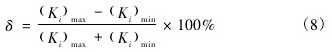 式中: (Ki)max、(Ki)min分別指在整個流量范圍內,各流量點儀表系數(shù)的*大值和*小值。