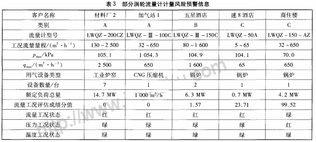 表3是建立渦輪流量計計量風險預警系統(tǒng)后,得到的部分渦輪流量計計量風險預警信息。