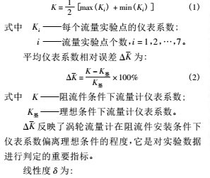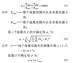 渦輪流量計(jì)的原理:當(dāng)被測流體流過傳感器時,在流體作用下,葉輪受力旋轉(zhuǎn),其轉(zhuǎn)速與管道平均流速成正比,葉輪的轉(zhuǎn)動周期改變磁電轉(zhuǎn)換器的磁阻值,檢測線圈中的磁通隨之發(fā)生周期性變化,產(chǎn)生周期性的感應(yīng)電勢,即電脈沖信號?;跍u輪流量計(jì)的測量原理,根據(jù)渦輪流量計(jì)檢定規(guī)程,確定了實(shí)流實(shí)驗(yàn)結(jié)果的評價(jià)指標(biāo),其中包括: 儀表系數(shù)、平均儀表系數(shù)相對誤差、線性度和不確定度。