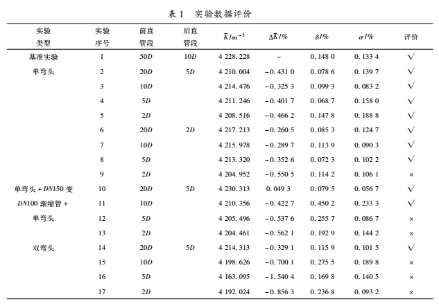 c.在后2D的數(shù)據(jù)中,前2D的結(jié)果不滿足評價(jià)準(zhǔn)則,所以對單彎頭而言,后直管段長度為5D情況下前直管段長度至少為2D,后直管段長度為2D情況下前直管段長度至少為5D。